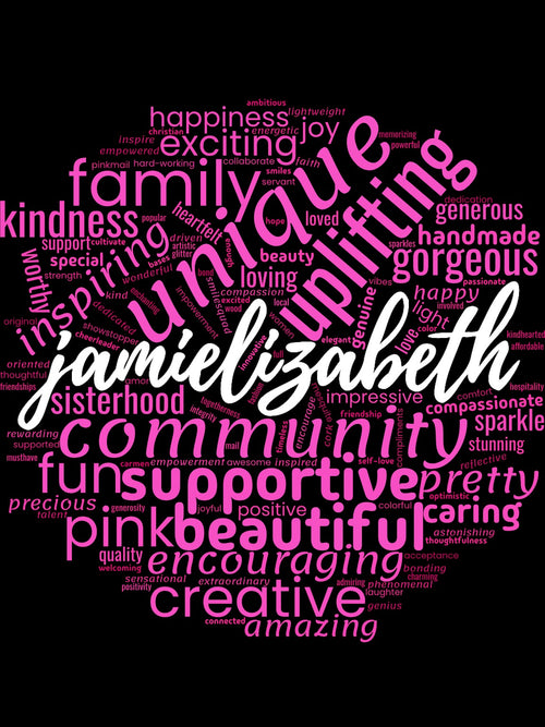 We asked our VIPs to share words that describe Jamielizabeth and our Jamielizabeth VIP group, and their responses were turned into a word cloud. This visual showcases the love, creativity, and community that define our brand and the special connection we share with our VIPs & customers. It’s a beautiful reflection of what makes Jamielizabeth and our amazing group so unique!
