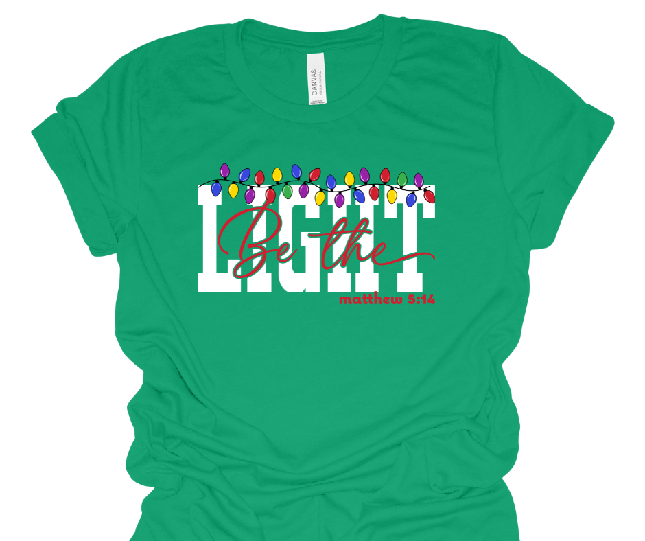 Shine bright this season with our “Be The Light” Christmas tee — a beautiful reminder to spread kindness, joy, and love everywhere you go. Printed on a green shirt, this design glows with meaning and festive charm.