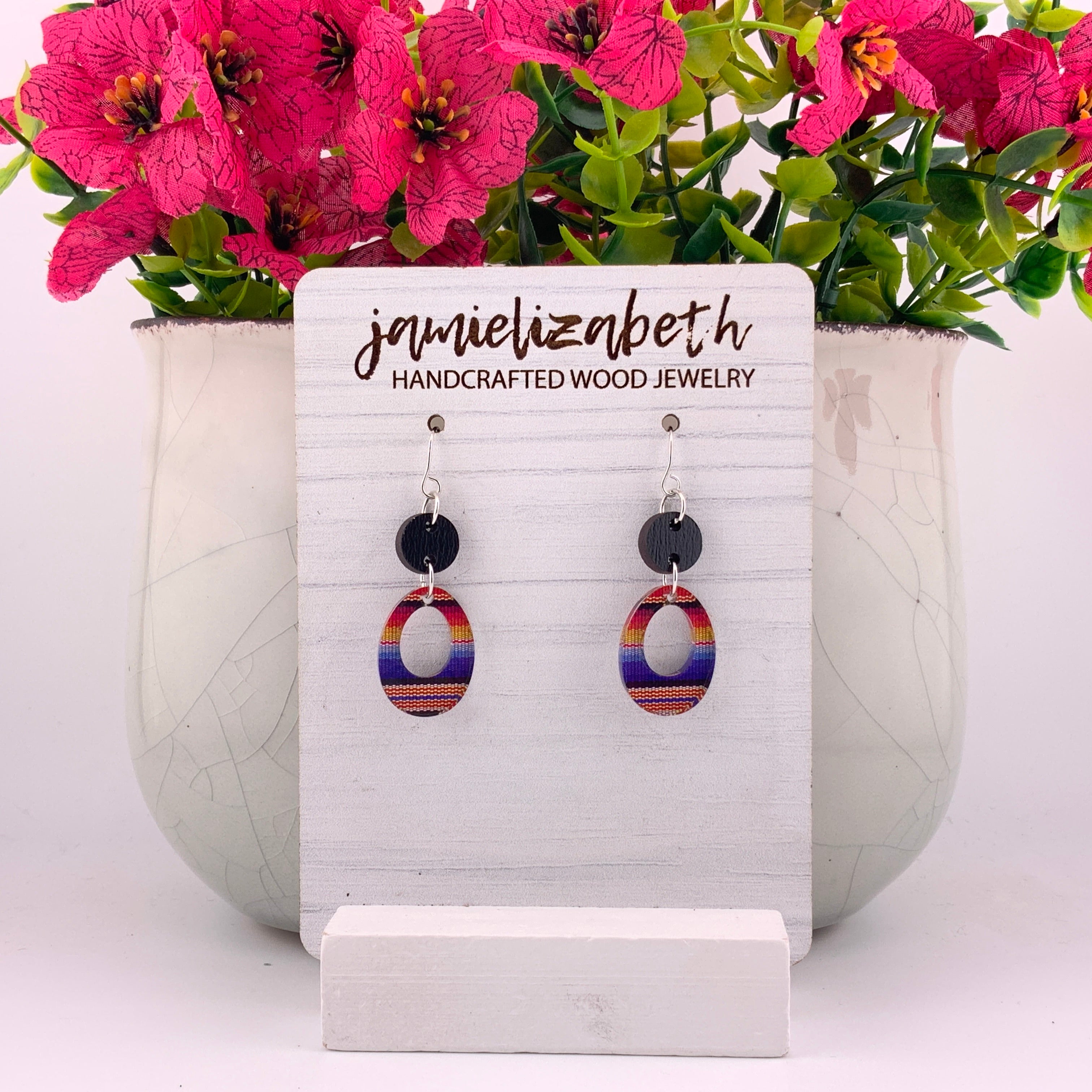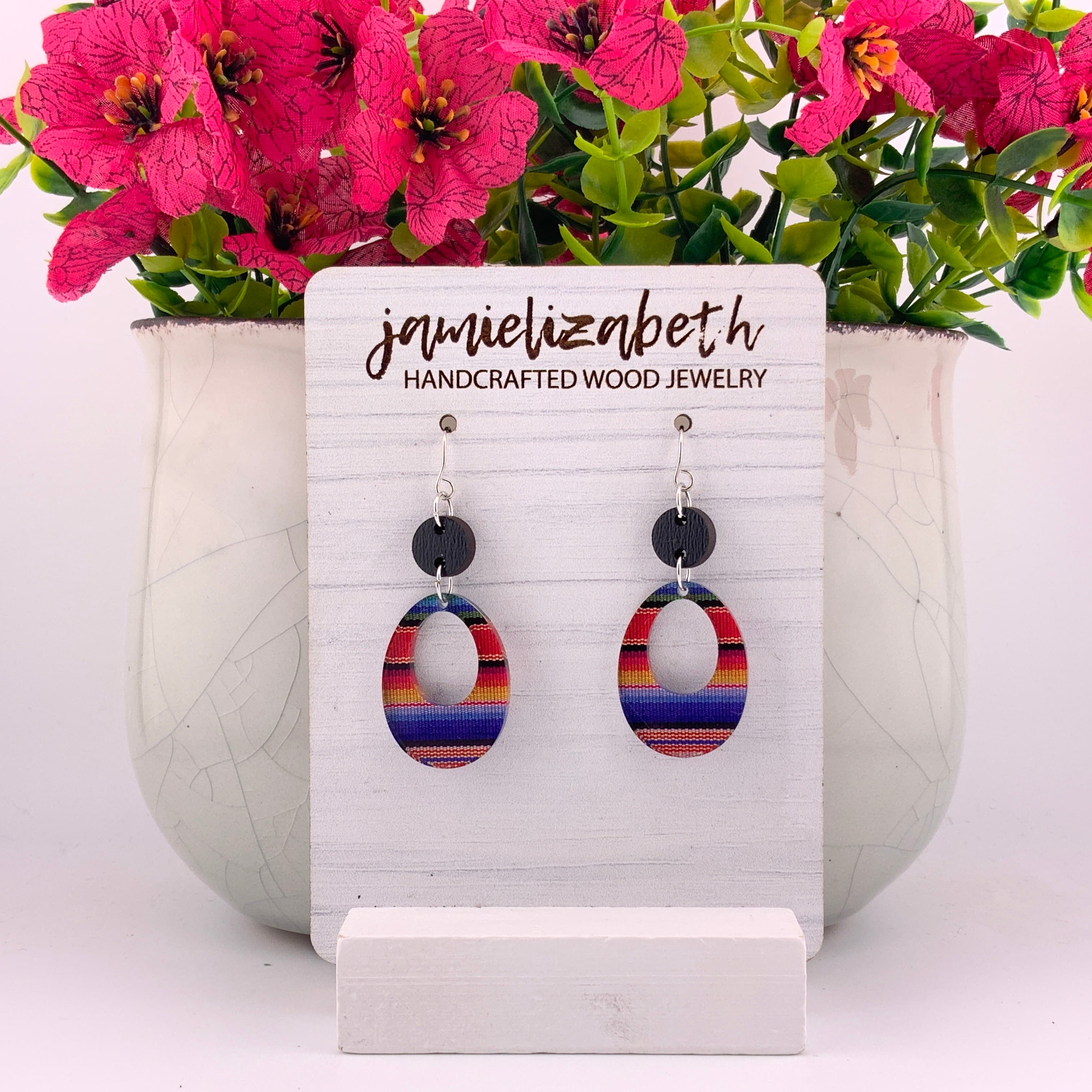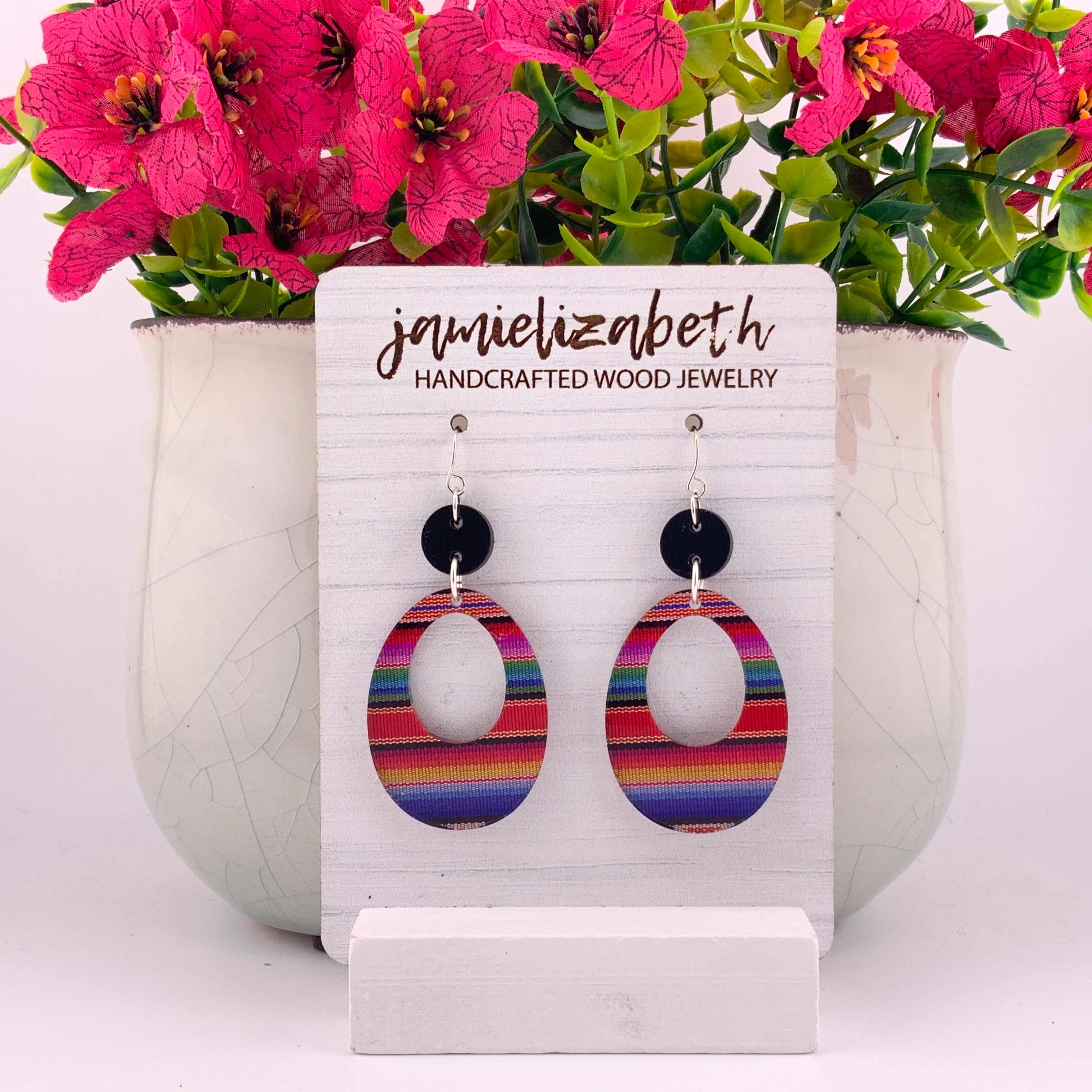 Bring bold, vibrant color to your look with our Serape Olive Drops! Featuring a bright and lively serape pattern paired with a sleek black wood topper, these earrings add the perfect touch of Southwestern flair. Lightweight and full of personality, they’re ideal for everyday wear, festivals, or gifting someone who loves colorful, joyful designs.
