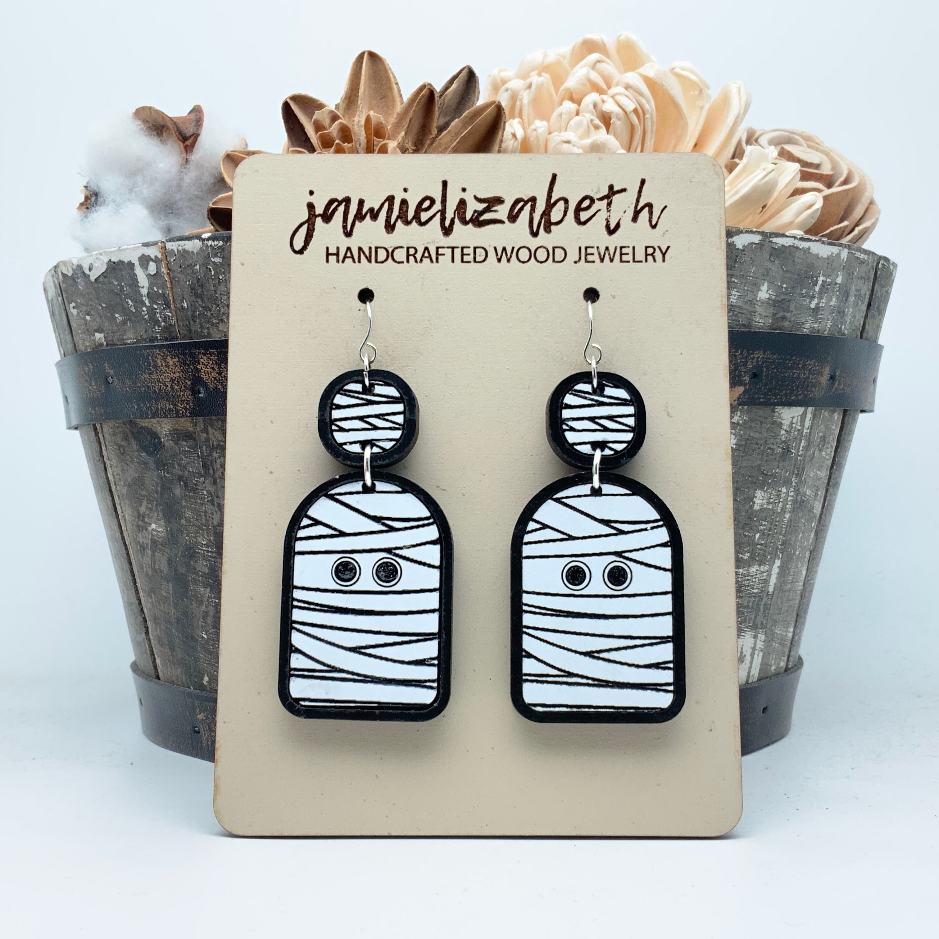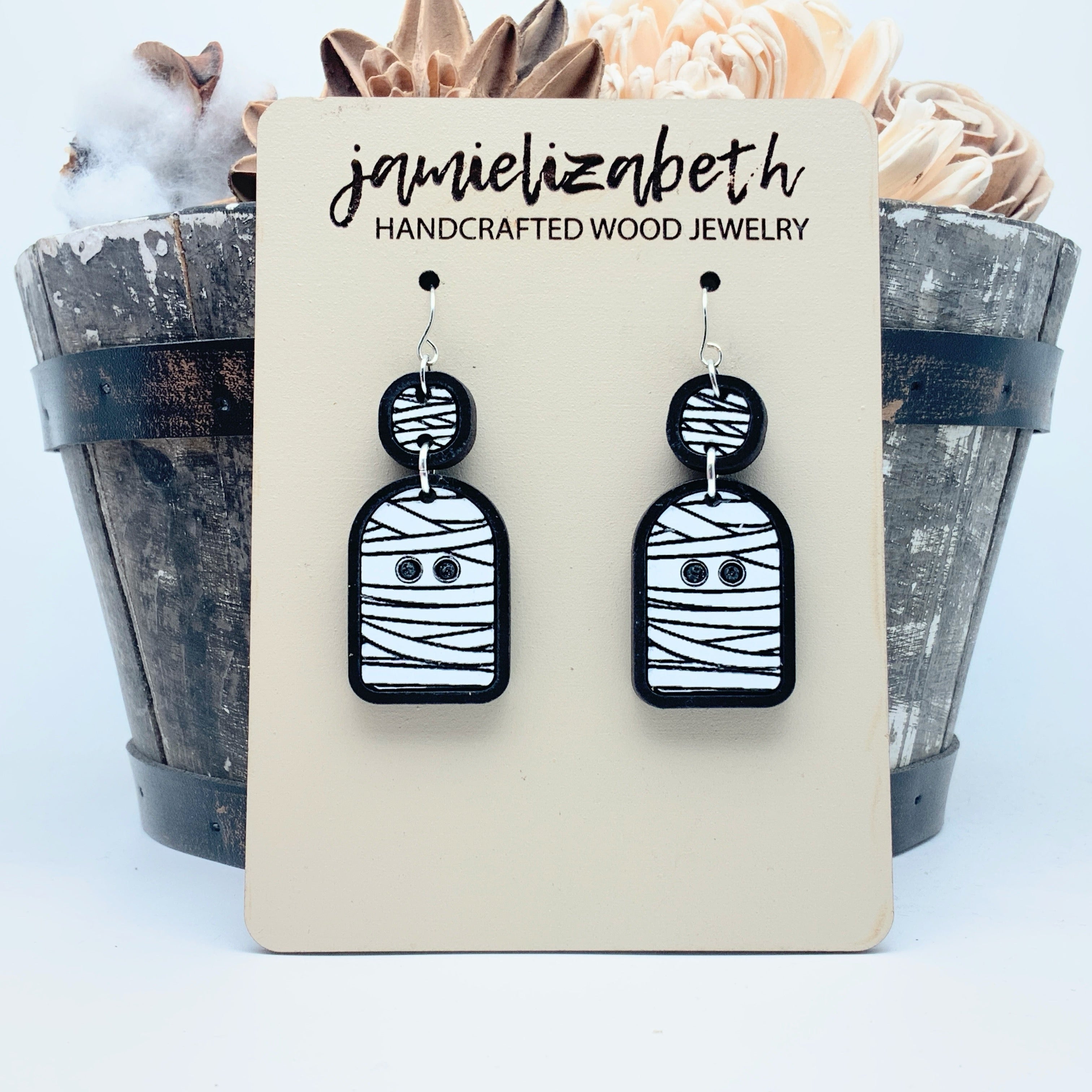 Unwrap the fun with our Mummy earrings! These quirky accessories add a playful twist to your look. Plus, they make a great conversation starter for your next Halloween party. Get wrapped up in style with our Mummy collection.