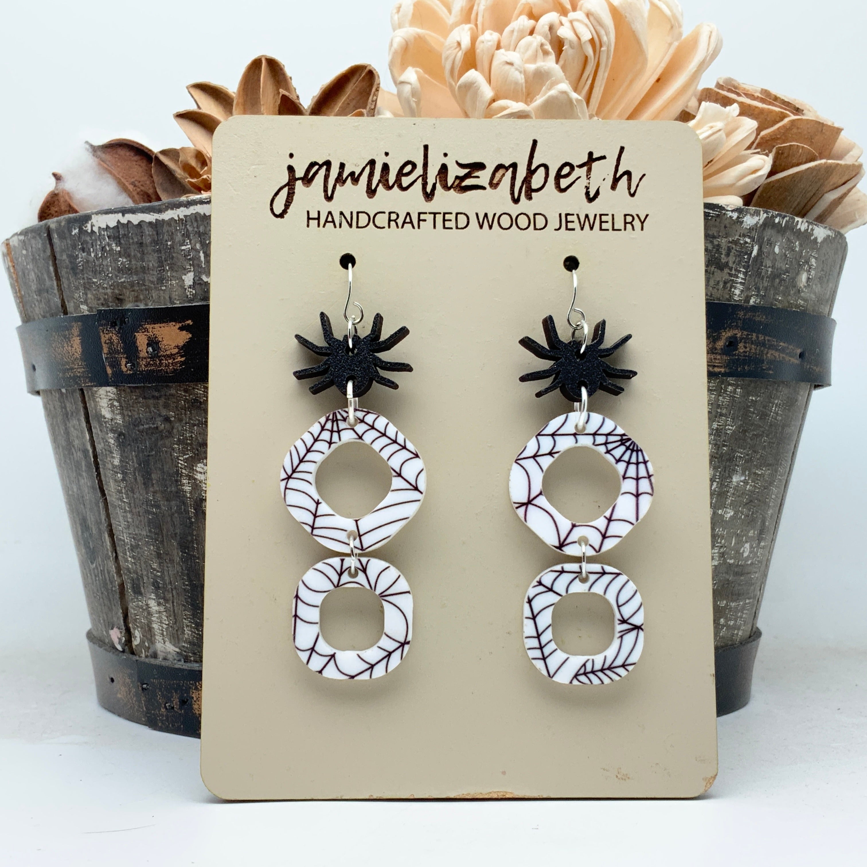 Spooky season, but make it stylish — our Spiderweb Geo Drops feature a crisp white-and-black spiderweb acrylic with a bold black spider topper for just the right mix of eerie and elegant. Perfect for Halloween vibes or for anyone who loves a little playful edge all year long.