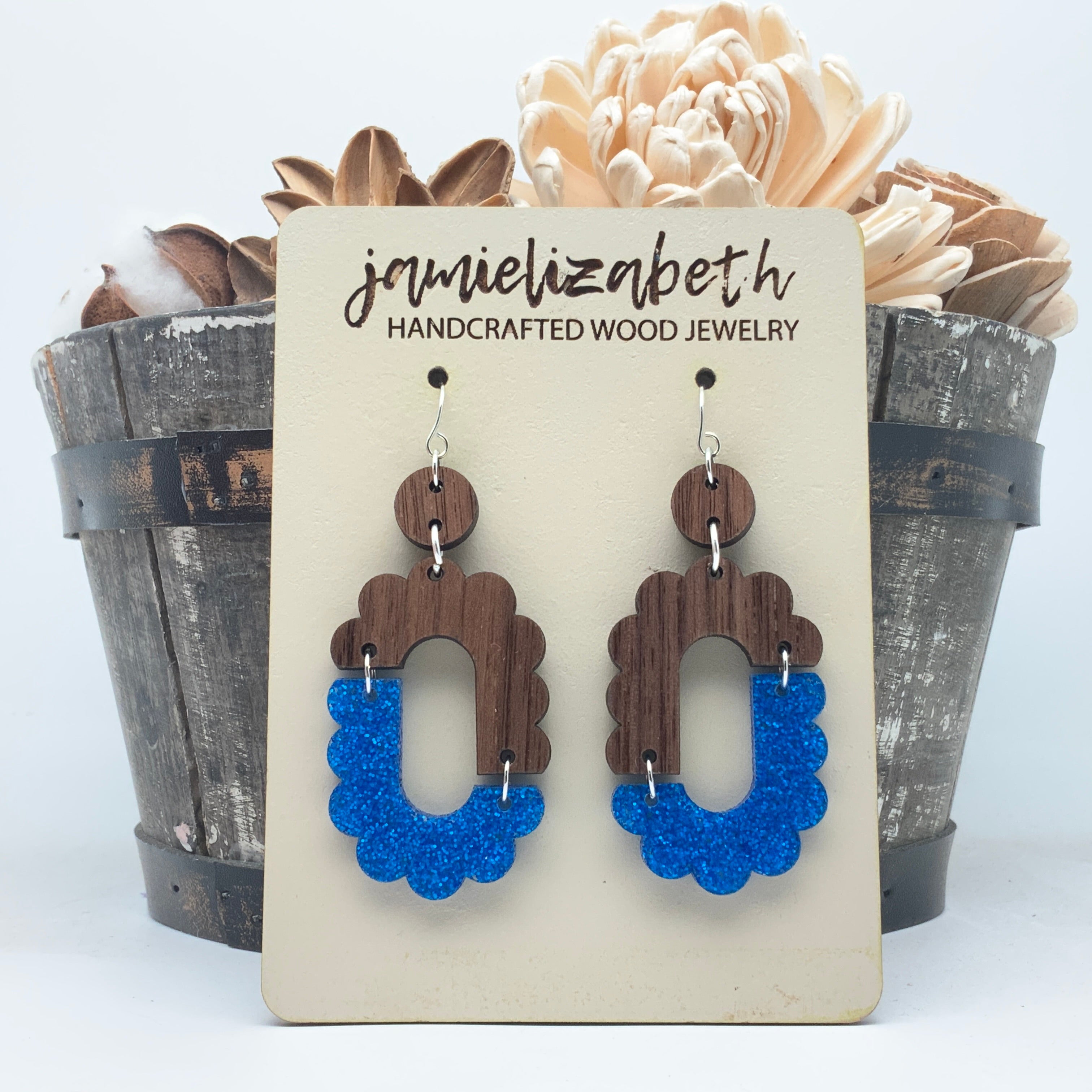 Make a statement fit for a queen with Royalty Blue β€” a bright, bold blue glitter acrylic paired with walnut or maple wood in our playful boho bubble shape. They sparkle, they shine, and they bring instant confidence to any look.