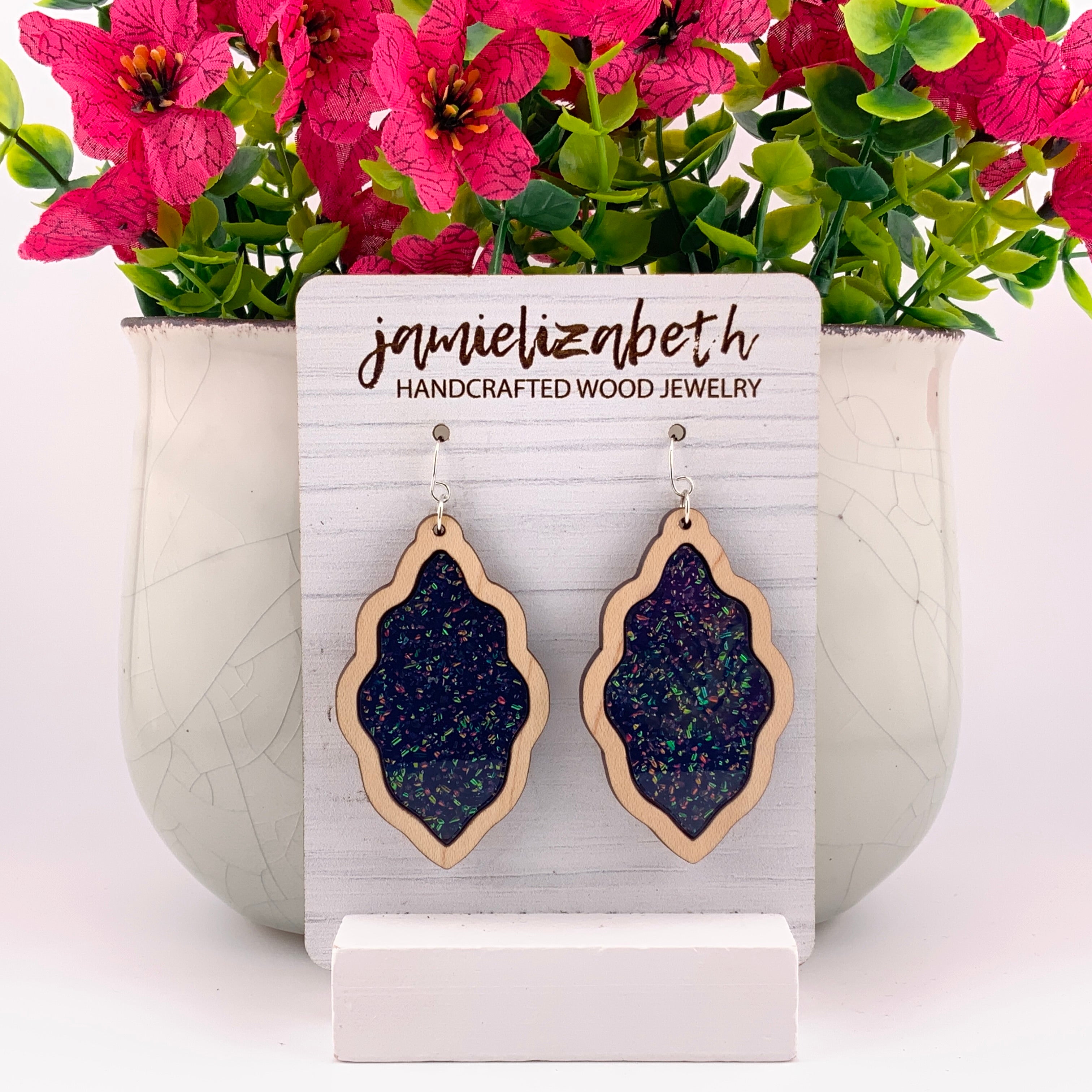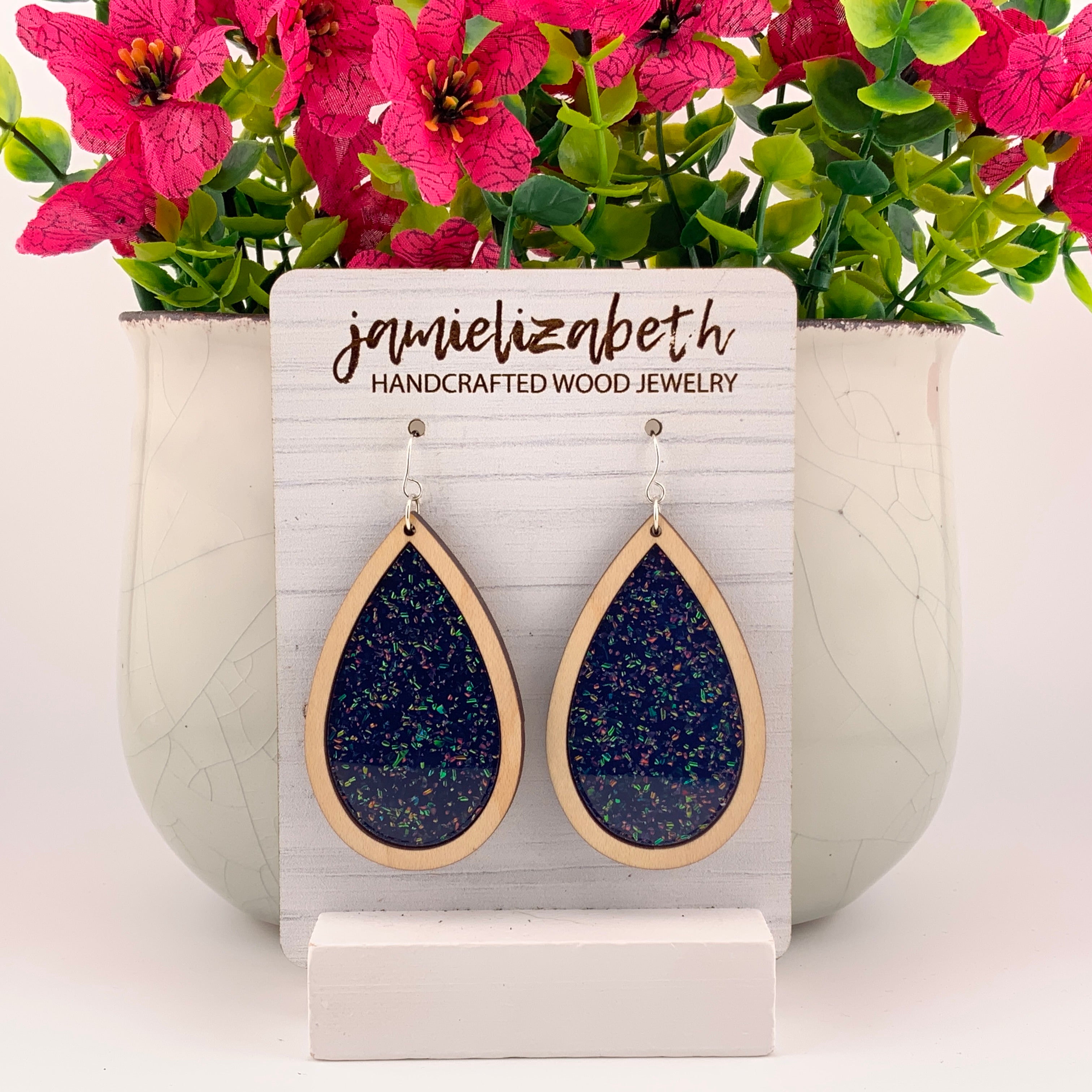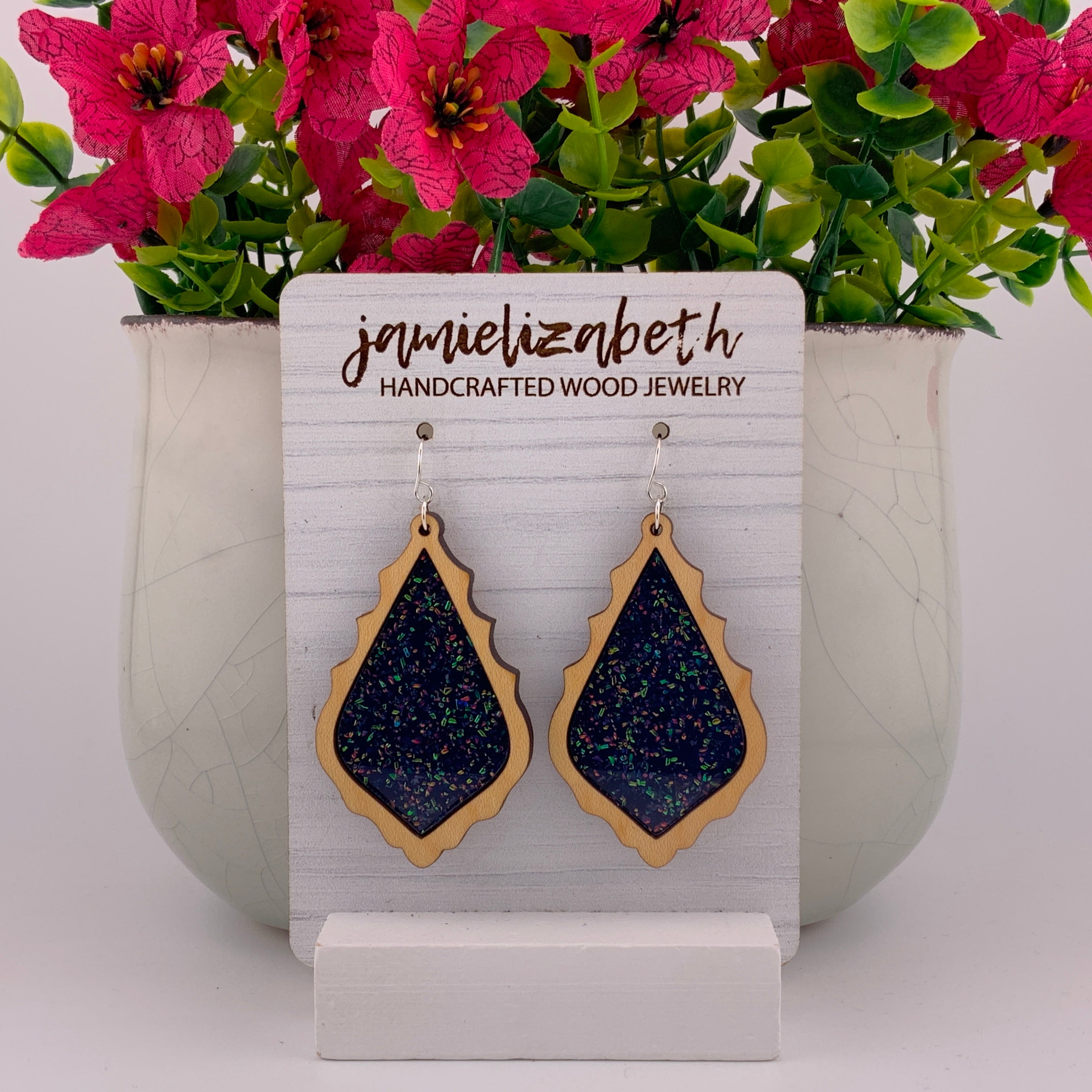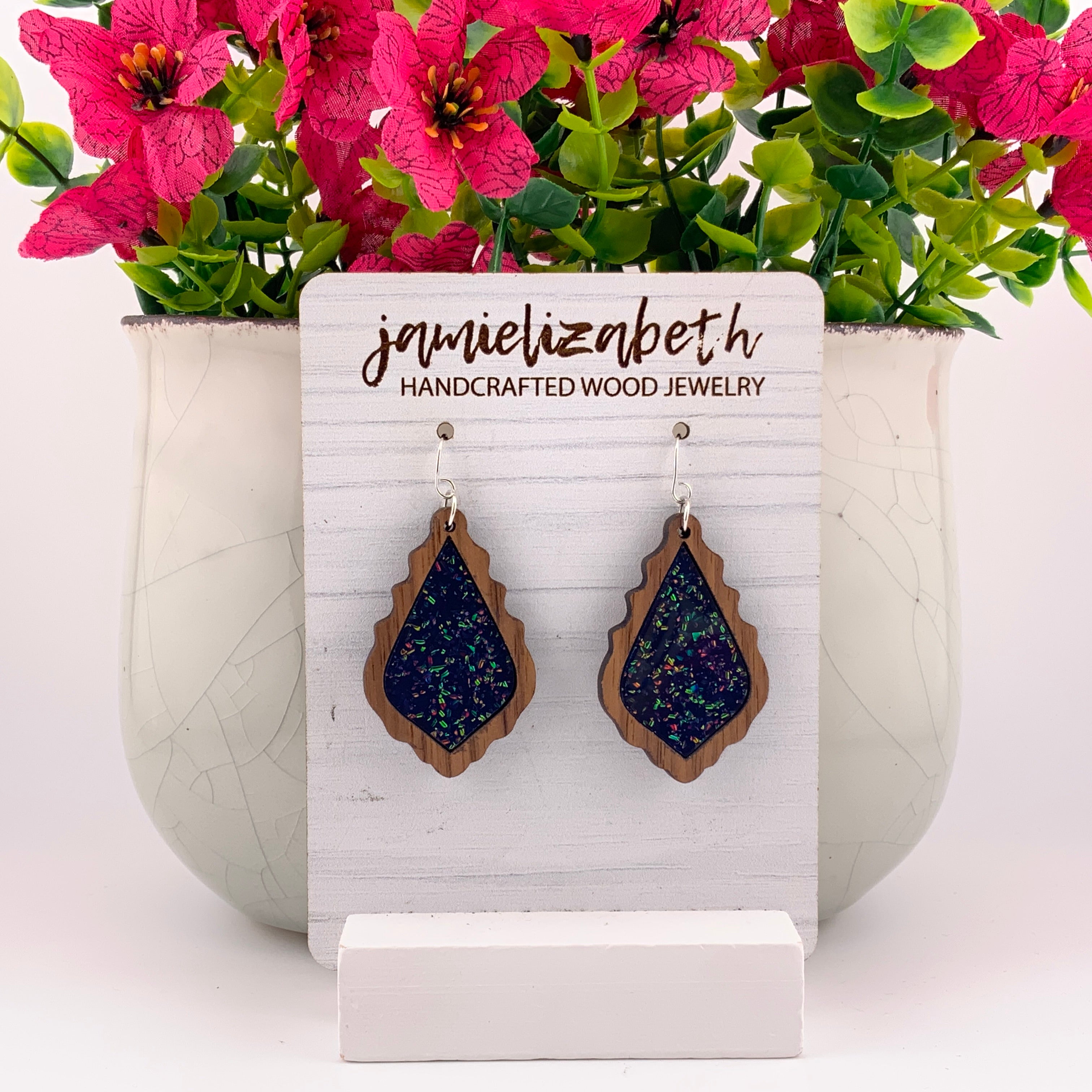 Bold, luminous, and full of shimmer β our Midnight Spark Acrylic designs capture the deep beauty of a starry night. Each pair features rich dark blue glitter acrylic, available in Teardrop, Scallop, or Chandelier shapes. Lightweight and full of movement, they bring just the right touch of sparkle and sophistication to any outfit.