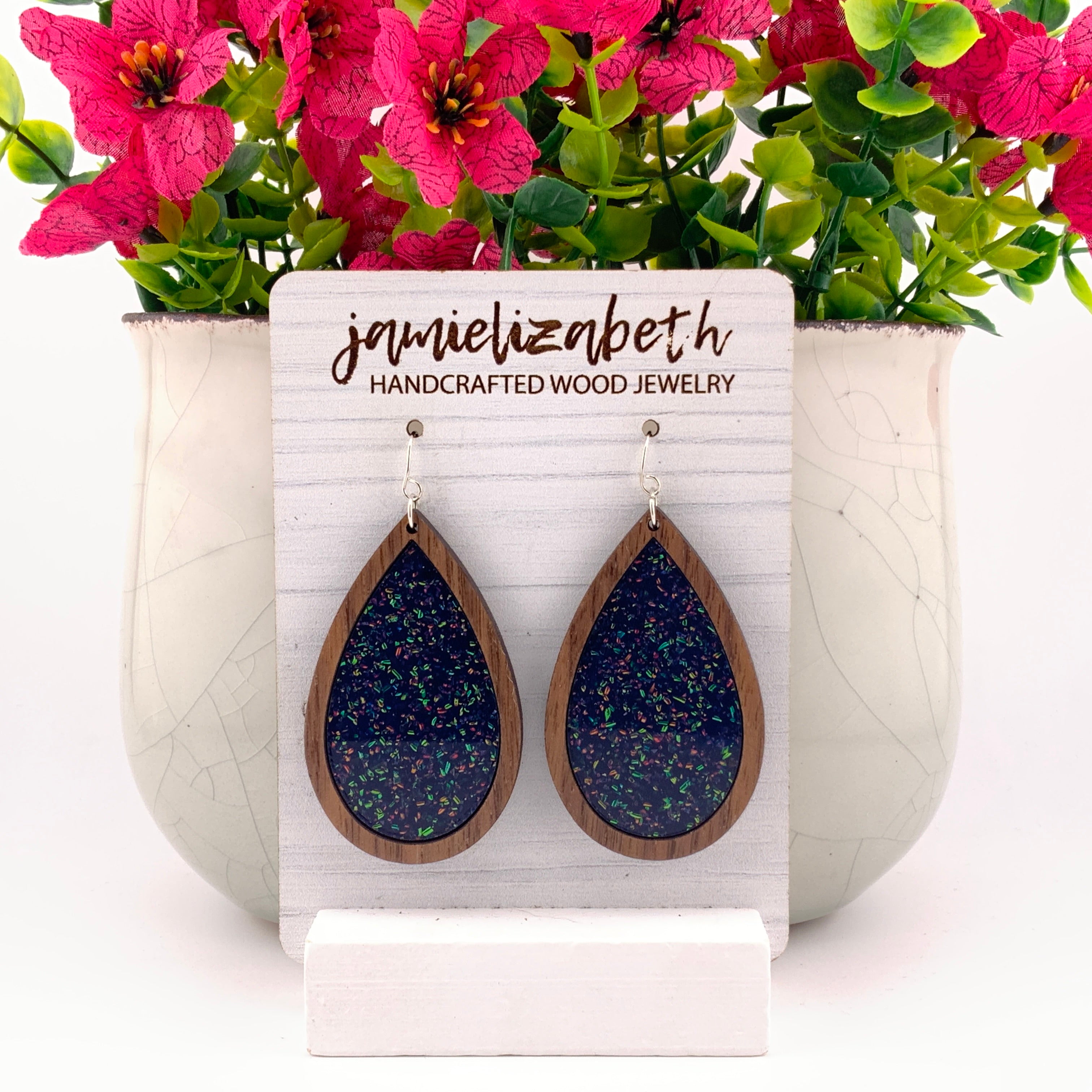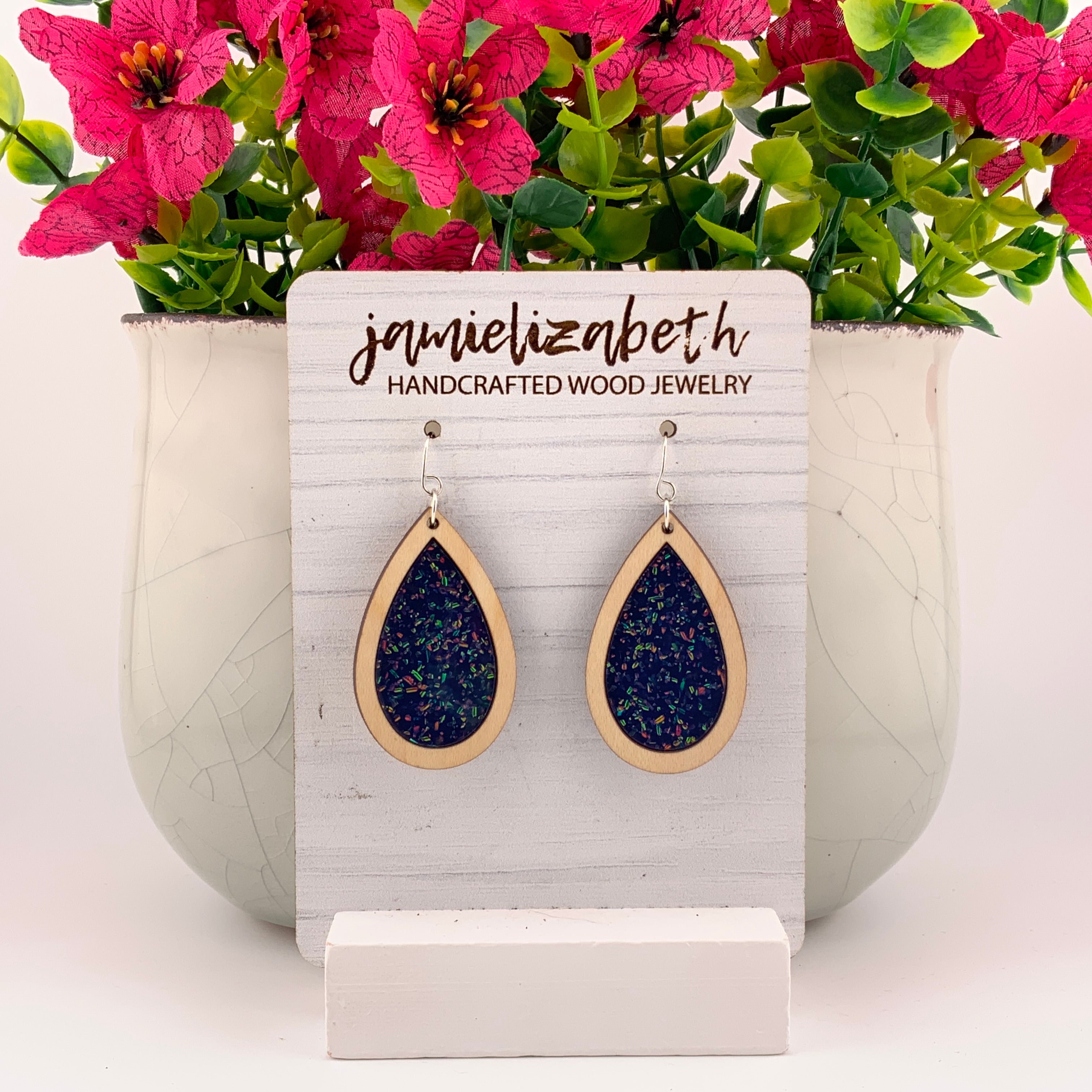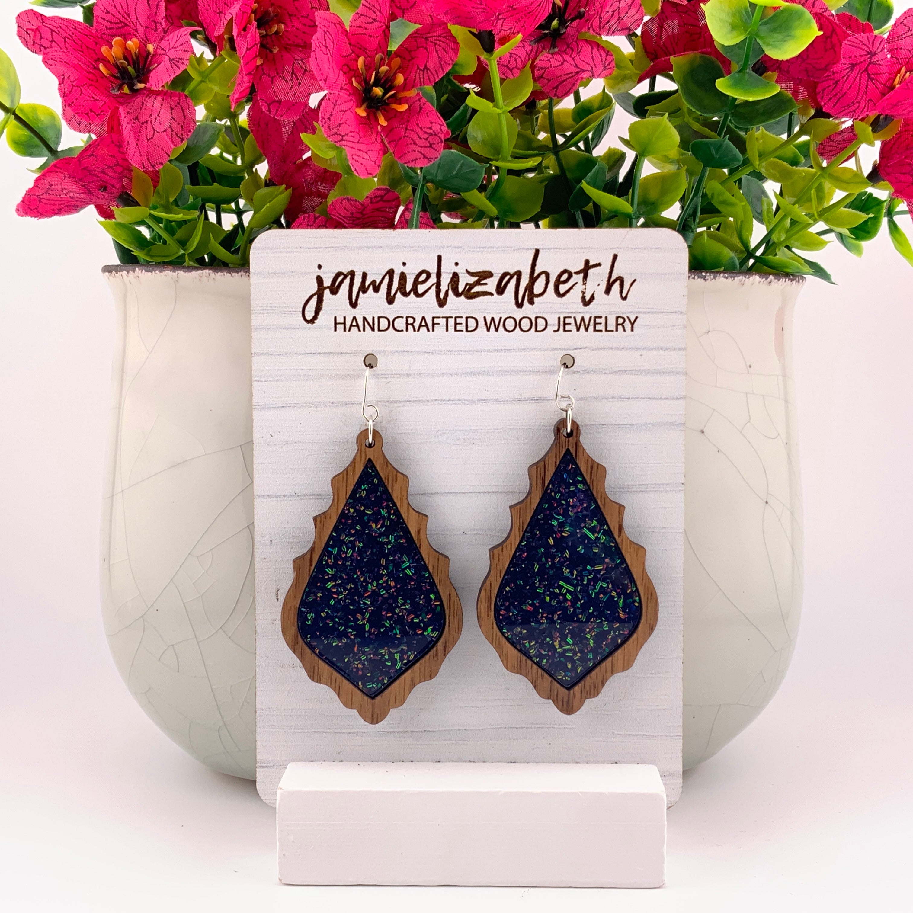 Bold, luminous, and full of shimmer β our Midnight Spark Acrylic designs capture the deep beauty of a starry night. Each pair features rich dark blue glitter acrylic, available in Teardrop, Scallop, or Chandelier shapes. Lightweight and full of movement, they bring just the right touch of sparkle and sophistication to any outfit.