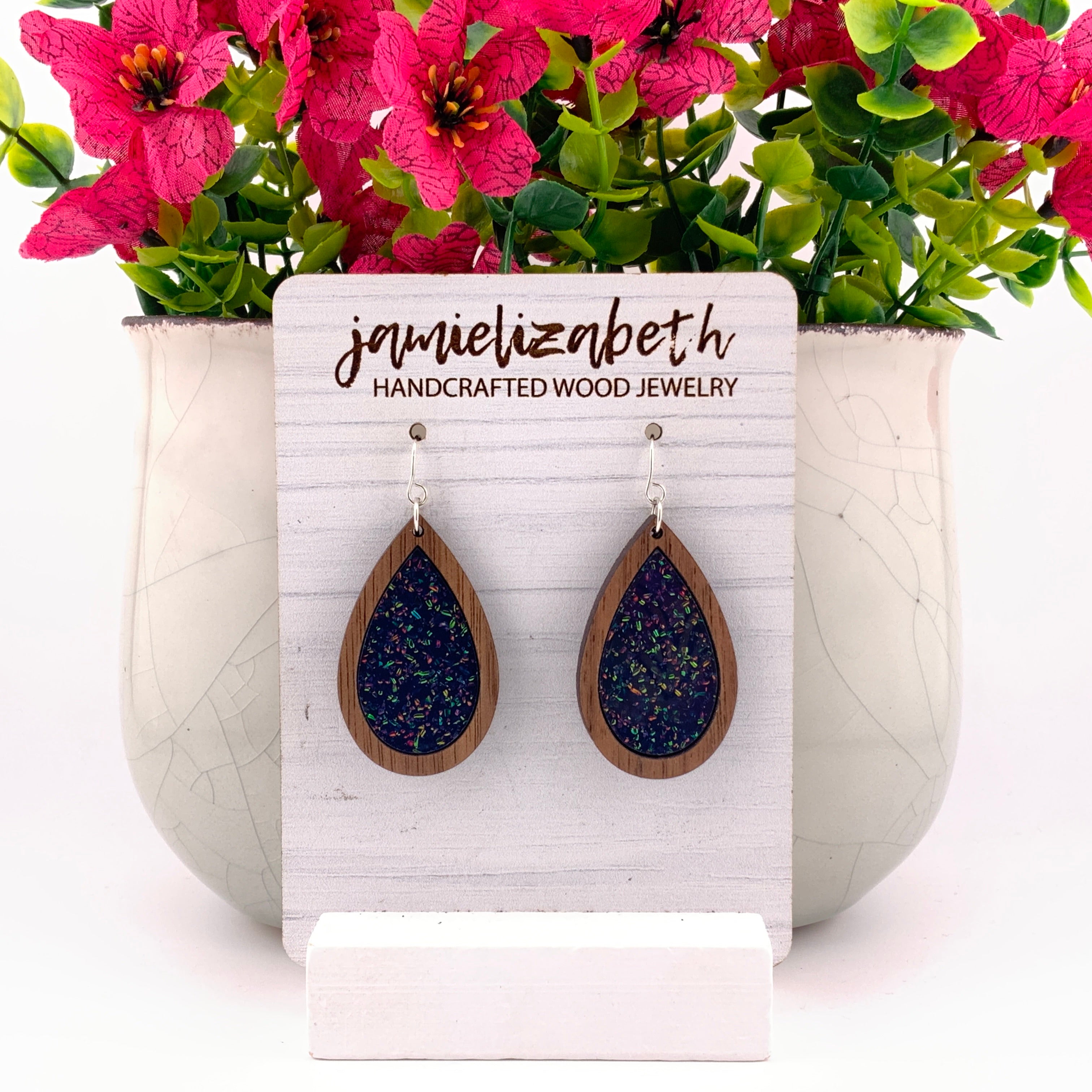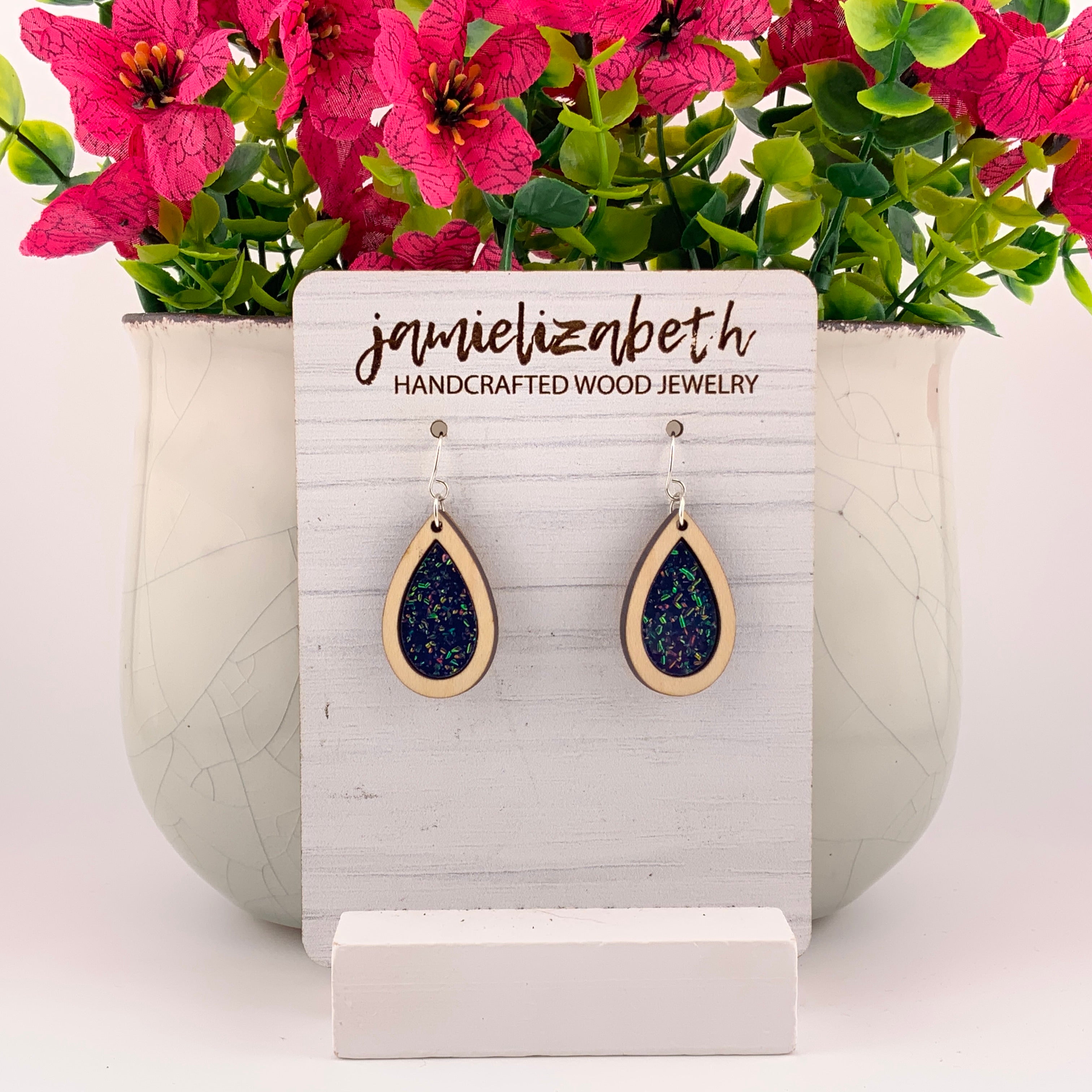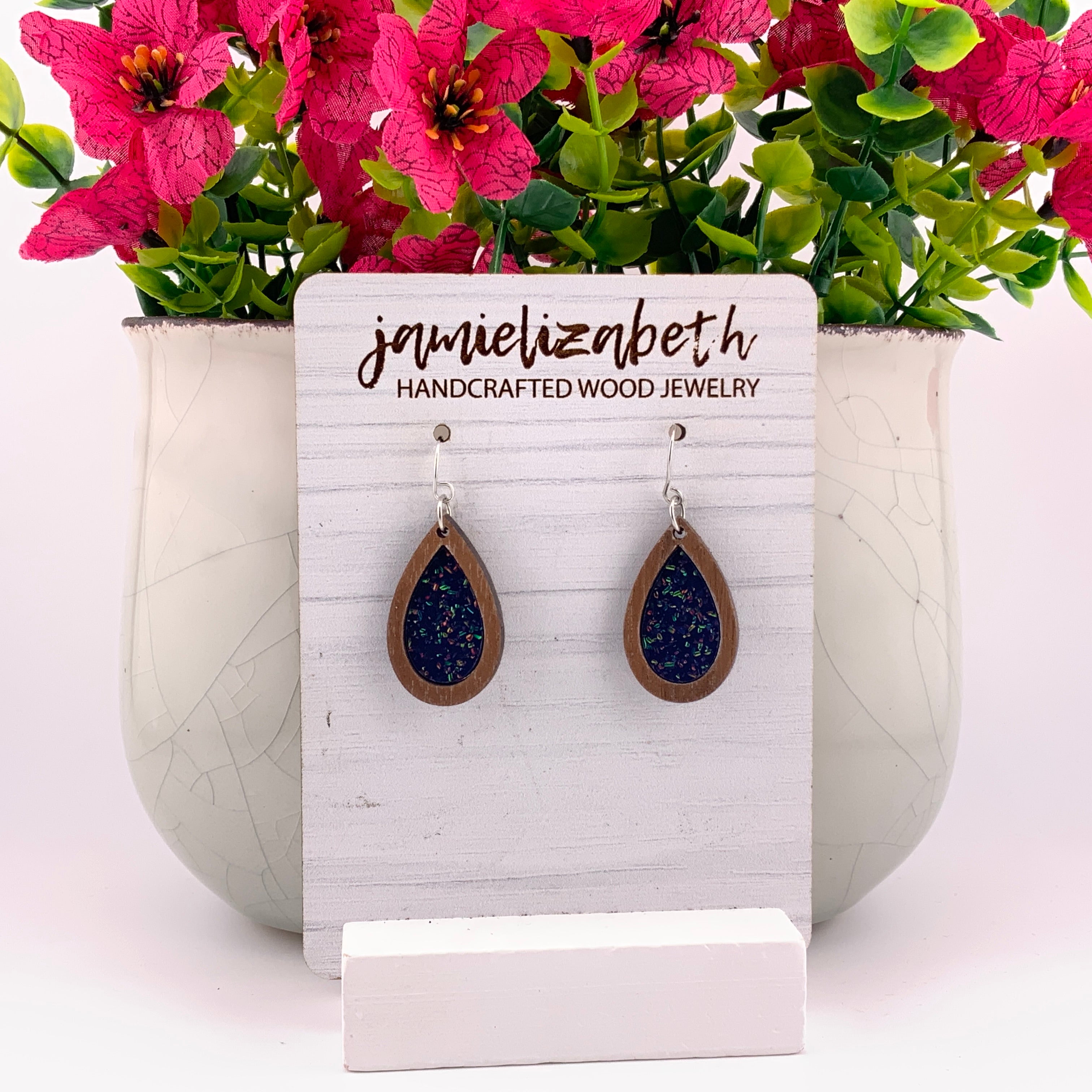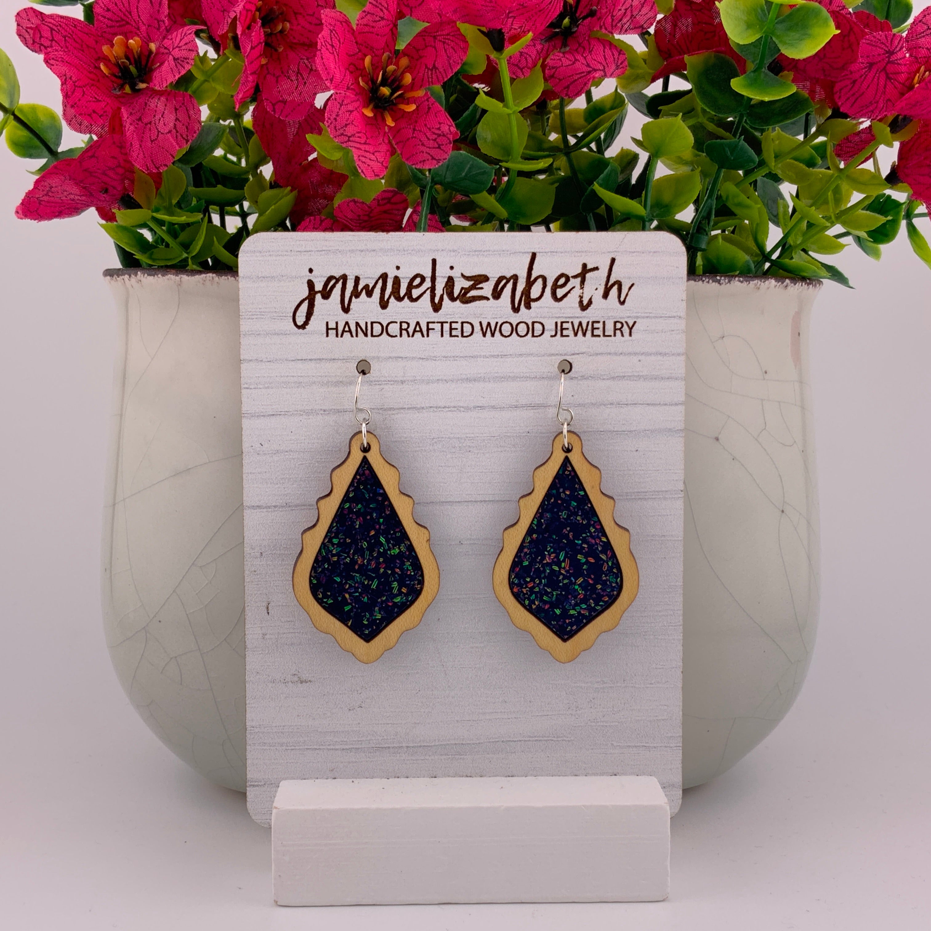 Bold, luminous, and full of shimmer β our Midnight Spark Acrylic designs capture the deep beauty of a starry night. Each pair features rich dark blue glitter acrylic, available in Teardrop, Scallop, or Chandelier shapes. Lightweight and full of movement, they bring just the right touch of sparkle and sophistication to any outfit.