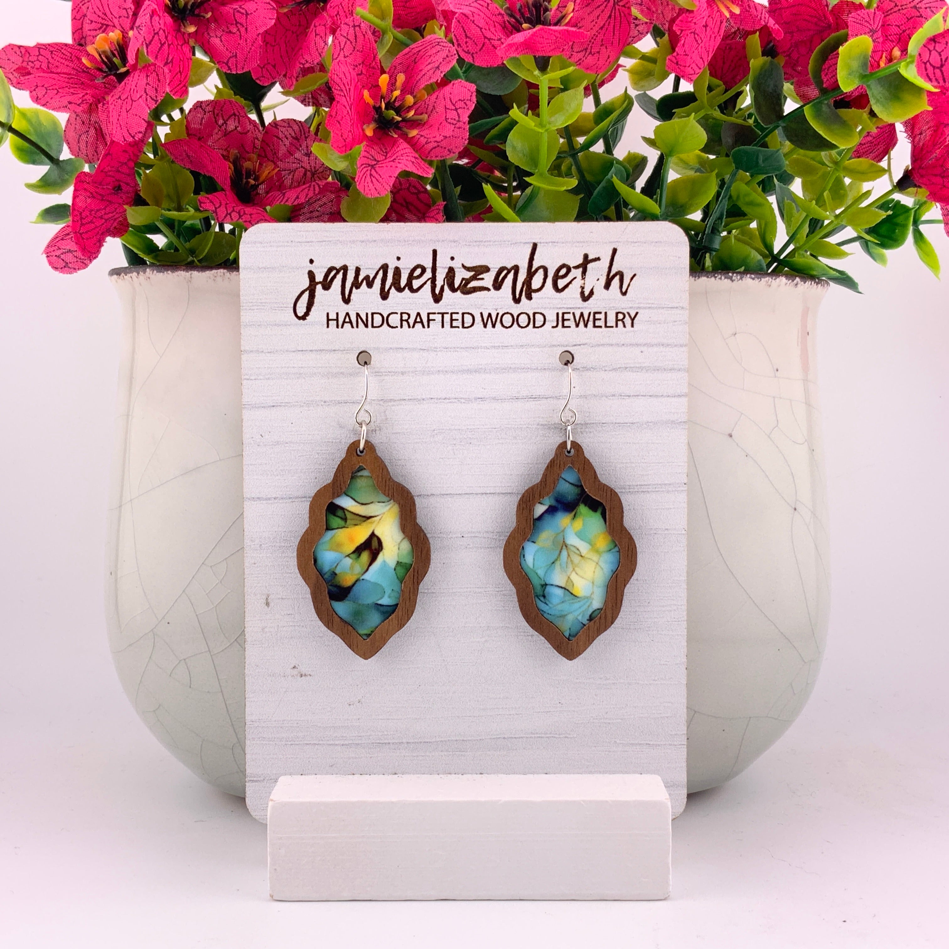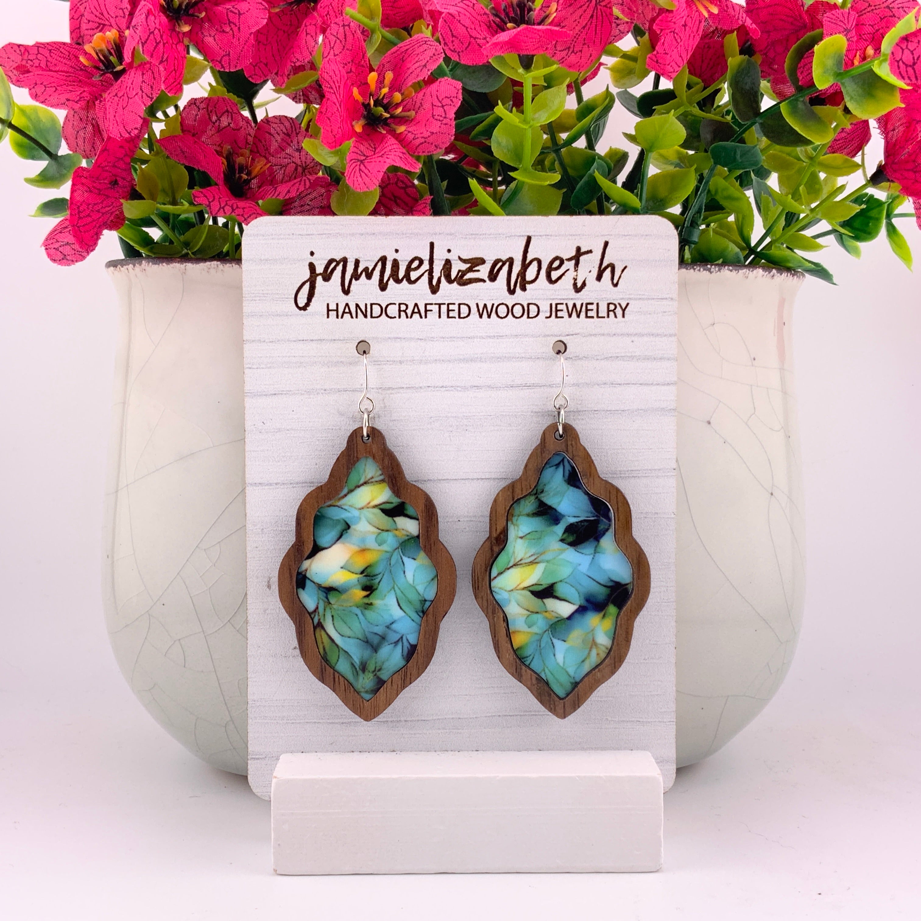 Bring a fresh pop of color to your style with our Turquoise Watercolor Leaves! Featuring a soft, flowing turquoise watercolor leaf design framed in warm walnut wood, these scallop-shaped earrings blend artistic charm with natural warmth. Lightweight and eye-catching, they’re perfect for everyday wear, spring and summer outfits, or gifting someone who loves a pretty wash of color.